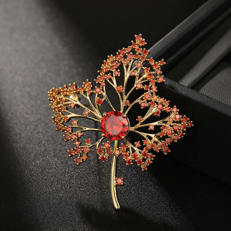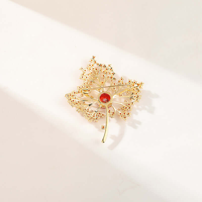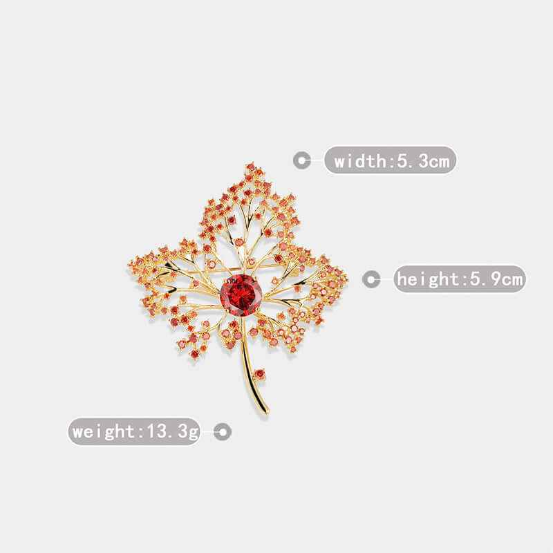 Copper Red Maple Leaf Diamond Brooch